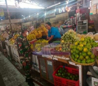 Dalam kesempatan komsos dengan para pedagang Koptu Agus  menyampaikan kepada para pedagang dan pembeli tetap mengedepankan protokoler kesehatan sesuai aturan yang sudah disampaikan pemerintah menjelang hari raya idul adha biasanya pasar akan ramai didatangi oleh para pengunjung, babinsa juga menyampaikn agar para pedagang buah ,pedagang sayur jangan menaikan harga di pasaran agar menyesuaikan harga yg sedang berlaku di pasaran yang semestinya.