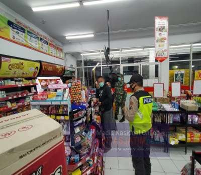 BOYOLALI (pagomex.info) – Tekan penyebaran Virus Corona, Kodim 0724/Boyolali melalui Babinsa Sawahan Koramil 11/Ngemplak Sertu Sugianto melaksanakan patroli wilayah gabungan dengan Polsek Ngemplak di tempat perbelanjaan swalayan yang ada di Desa Sawahan Kecamatan Ngemplak Kabupaten Boyolali. Selasa Malam (15/09/2020).