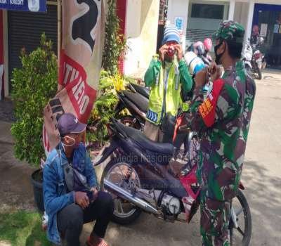 WONOGIRI (pagomex.info) – Anggota Koramil 06/Batuwarno Sertu Sutrisno bersama dengan rekan Babinsa lainnya melaksanakan patroli protokol kesehatan di sepanjang jalan protokol Kecamatan Batuwarno tempat berkerumun massa, guna mencegah dan memutus rantai penyebaran Covid-19, Kamis (3/11/2020).