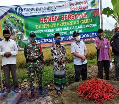 BOYOLALI (pagomex.info) – Tingkatkan Swasembada pangan Babinsa Bandung Koramil 17/Wonosegoro Kodim 0724/Boyolali Serda Suyono bersama Pondok Pesantren Darussalam Bandung, Kecamatan Wonosegoro melaksanakan pendampingan panen raya tanaman cabai di Demplot Pertanian Cabai milik Ponpes tersebut. Rabu (10/03/2021).