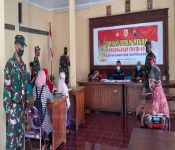 Selain memonitoring kegiatan, anggota Babinsa yang hadir dalam kegiatan penyaluran BST guna memastikan kegiatan yang dilaksanakan sesuai dengan protocol kesehatan, (Arda 72)