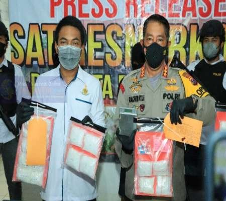 paket sabu seberat 1.177 gram serta 50 pil ekstasi seberat 15 gram ditangkap.