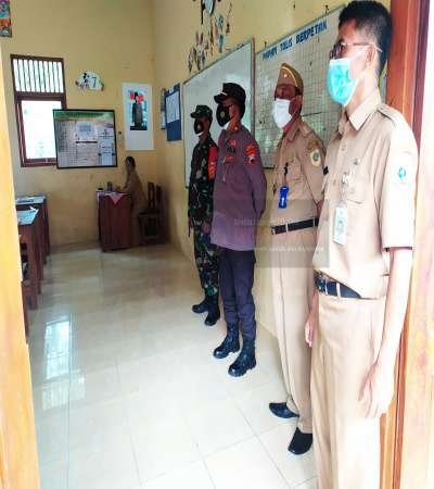 Mewakili Danramil 24/Puhpelem Kapten Inf Tono, Bati Tuud Pelda Bambang beserta anggota, bersama dengan Satgas penanganan Covid-19 Kecamatan Puhpelem meninjau dan memantau langsung ujicoba pelaksanaan PTM.