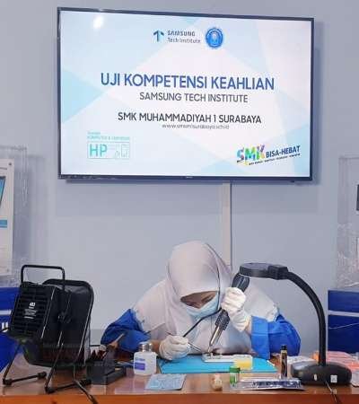 “Dalam ujian kali ini setiap siswa menunjukkan kemampuan ketrampilan nya menjadi teknisi HP, karena mereka telah banyak berlatih di sekolah dan diterapkan juga di tempat Magang di Samsung Service Center.” ujar Gani Nur Utomo Kepala Program TKJ kelas Samsung.