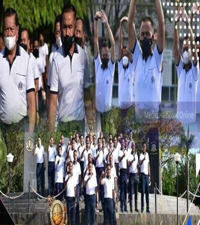 SURABAYA (pagomex.info) – Didampingi Komandan Korps Marinir (Dankormar) Mayor Jenderal TNI (Mar) Suhartono dan Ketua PG Jalasenastri Kormar Ny.Etta Suhartono, Kepala Staf TNI Angkatan Laut (Kasal) Laksamana TNI Yudo Margono, S.E.,M.M dengan Ketua Umum Jalasenastri Ny.Vero Yudo Margono melaksanakan olahraga bersama dengan keluarga besar Korps Marinir Jumat (04/06/2021).