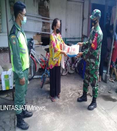 Babinsa Keprabon membagikan bantuan beras langsung sesuai data yang di terima dari Komando Atas.