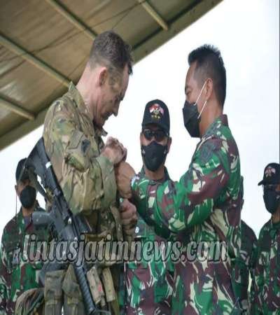 BATURAJA (pagomex.info) – Kepala Staf Angkatan Darat (Kasad) Jenderal TNI Andika Perkasa dan Commanding General USARPAC USA General Charles A. Flynn menyematkan wing terjun kepada 569 penerjun usai melaksanakan penerjunan bersama dalam latihan “Garuda Airborne”, di titik tinjau penerjunan, daerah Talang Sipin Puslatpur Baturaja, Sumatera Selatan, Rabu (4/8/2021)
