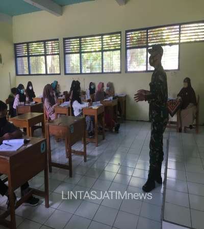 Kegiatan sosialisasi maupun edukasi masalah protokol disiplin kesehatan kepada penyelenggara sekolah dan murid SMP, yang di laksanakan Sertu Marjoko sebagai bentuk dan tanggung jawab sebagai Babinsa di wilyah binaan serta keseriusan pemerintah dalam memutus mata rantai penyebaran virus Covid-19 sekaligus memberikan penjelasan kepada murid-murid untuk selalu menggunakan masker saat beraktifitas di sekolah.