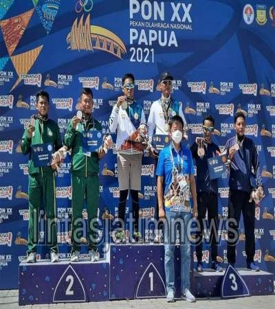 JAYAPURA (lintasjatimnews) – Prajurit Batalyon Komunikasi dan Elektronika 2 Marinir (Yonkomlek 2 Mar) Peltu Marinir Farhaenudi sumbangkan medali perak dalam cabang olahraga menembak di kejuaraan Pekan Olahraga Nasional (PON) XX Papua yang dilaksanakan di Kampung Harapan dan Auri Sentani, Kabupaten Jayapura, Papua, Rabu (13/10/2021).