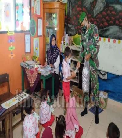 Seperti halnya yang dilakukan oleh anggota Pos Arso XIII kali ini dengan memberikan edukasi tentang virus Covid-19 dan prokes dengan kegiatan pembagian masker kepada siswa PAUD Tunas Harapan. Kegiatan dilaksanakan di Kampung Naramben Arso XIII, Distrik Skanto, Kabupaten Keerom Papua.