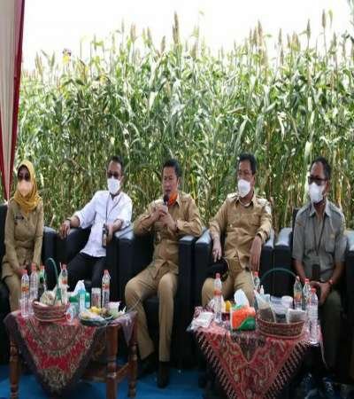 Bupati Lamongan Yuhronur Efendi, bersama Wakil Bupati Abdul Rouf, Kepala Dinas Pertanian Provinsi Jawa Timur Hadi Sulistyo, Kepala Dinas TPHP Lamongan Sukriyah, dan jajaran Forkopimda mengikuti acara secara virtual dan melaksanakan panen raya sorgum dari Desa Puncakwangi Kecamatan Babat.