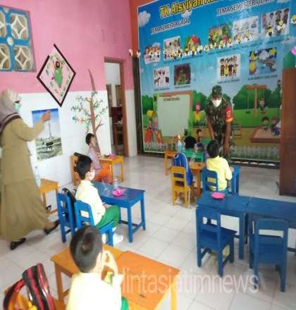 Dalam memantauan Kami sebagai Babinsa dengan cara mengecek dan mengawasi langsung, pemberlakuan proses belajar dan mengajar tatap muka sudah sesuai dengan ketentuan Peraturan Pemerintah daerah maupun pusat selama pandemi Covid-19.