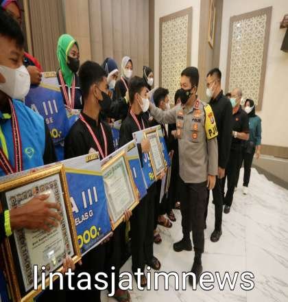 “Kami juga membuka kesempatan untuk dapat ikut mendaftar sebagai anggota Polri dan kami akan usulkan ke Mabes Polri, apabila dari atlet-atlet ini ada yang berminat untuk menjadi Polisi di jalur prestasi. Sekali lagi saya ucapkan terima kasih dan semoga ini dapat berlanjut terus,” ucapnya Kapolda usai menutup turnamen Pencak Silat Remaja Piala Kapolda Jatim.