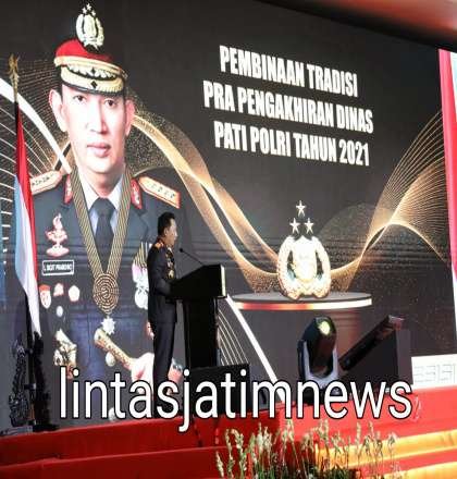 JAKARTA Pagomex – Kapolri Jenderal Listyo Sigit Prabowo menghadiri acara pembinaan tradisi pra-pengakhiran dinas Perwira Tinggi (Pati) Polri tahun 2021 di Auditorium PTIK, Jakarta Selatan, Selasa (21/12/2021).