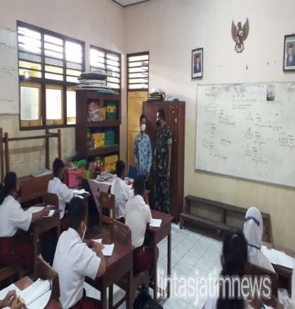 Menyikapi hal tersebut dan untuk mengantisipasi terjadinya klaster baru kasus positif Covid-19 di sekolah, maka Babinsa Kelurahan Jagalan aktif dan dengan penuh semangat selalu melaksanakan pemantauan dan memonitor secara langsung kegiatan PTM di sekolah, yang berada di wilayah binaan.