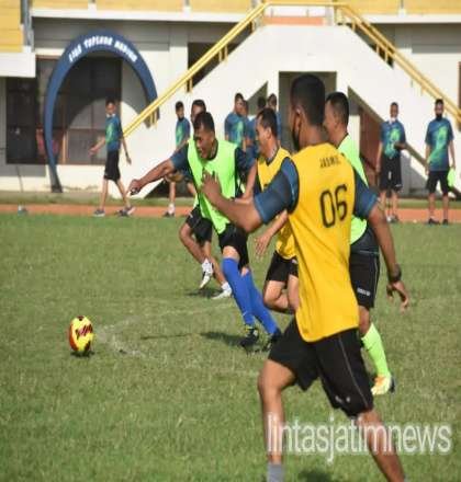 MADIUN Pagomex – Tingkatkan soliditas dan sinergitas, Danrem 081/DSJ, Kolonel Inf Waris Ari Nugroho bermain sepak bola bersama anggotanya di Stadion Wilis Kota Madiun, Selasa (25/1/2022) pagi.
