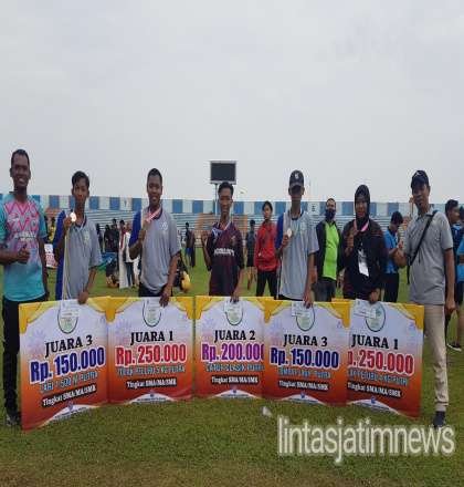 LAMONGAN Pagomex – Atlet dari SMA Muhammadiyah 6 Paciran berhasil raih 6 juara di berbagai kategori pada Olimpiade Olahraga Siswa Muhammadiyah (O2SM) 2021 yang digelar tiga tempat Stadion Surajaya, pondok pesantren Al Mizan Lamongan dan Universitas Muhammadiyah Lamongan (UMLA). (27/1/2022).