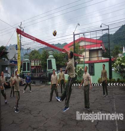 Seperti yang dilakukan oleh Prajurit dan PNS Kodim 0728/Wonogiri, setelah selesai melaksanakan apel pagi mereka melaksanakan senam pemanasan yang dilanjutkan dengan olahraga bola Volly di halaman Makodim setempat, Jum’at(28/1).