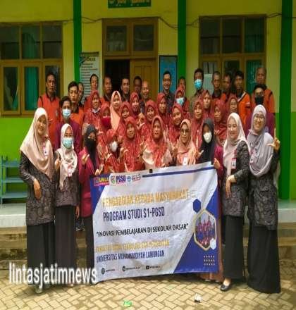 LAMONGAN Pagomex– Madrasah Ibtidaiyah Muhammadiyah (MIM) 16 Karangasem Paciran menerima kunjungan untuk menjalin kerjasama dan Pengabdian Masyarakat dari jurusan Pendidikan Guru Sekolah Dasar Universitas Muhammadiyah Lamongan (PGSD Umla) di ruang kelas MIM 16. Senin (07/03/2022).