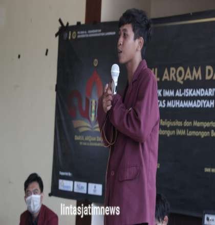 LAMONGAN Pagomex – Proses untuk mempersiapkan calon-calon yang siap melanjutkan tongkat estafet di Ikatan Mahasiswa Muhammadiyah, Pimpiman Komisariat (PK) Ikatan Mahasiswa Muhammadiyah (IMM) Al Iskandariyah Universitas Muhammadiyah Lamongan (UMLA) menggelar Darul Arqam Dasar (DAD) ke dua. Kegiatan tersebut dilaksanakan di SMKM 5 Babat Kampus 3, Jum’at sampai Ahad (18-20/3/2022).