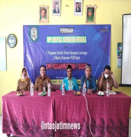 LAMONGAN Pagomex – Kurikulum merdeka yang saat ini sedang trending di kalangan satuan pendidikan disambut oleh SMP Muhammadiyah 1 Babat (SMP Mutuba). Pelaksanaan Pembinaan Implementasi Kurikulum Merdeka dihadiri Pengawas SMP Dinas Pendidikan Lamongan dan Dikdasmen PCM Babat, Selasa, 22 Maret 2022