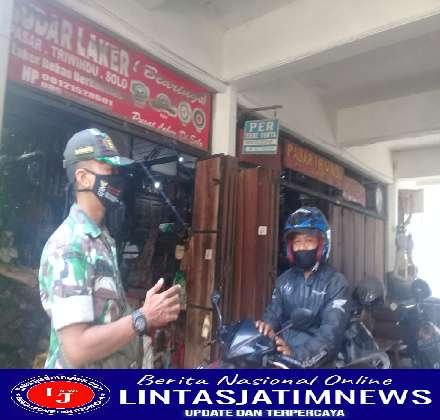 SURAKARTA Pagomex – Bertempat di Pasar Triwindu jln Diponegoro kelurahan Keprabon kecamatan Banjarsari, Babinsa Kelurahan Keprabon Koramil 02/Banjarsari Kodim 0735/Surakarta Serka Daniel dan Serda Sugiyanto melaksanakan kegiatan himbauan protokol kesehatan (Prokes) kepada warga masyarakat, Rabu (08/06/2022)