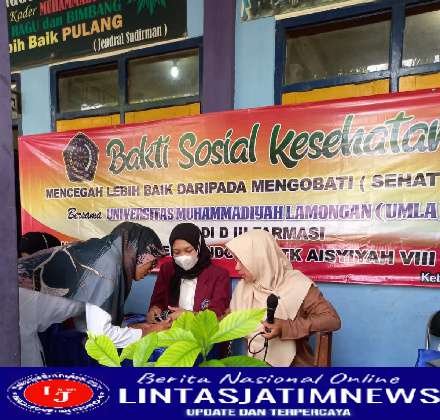 LAMONGAN Pagomex – Program Studi D3 Farmasi Universitas Muhammadiyah Lamongan (Umla) mengadakan kegiatan bakti sosial kesehatan, Selasa (7/6/2022) di MI Muhammadiayah 01 Kebalandono.