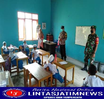 NGAWI Pagomex – Babinsa Pos Koramil Tipe B 0805/16 Pangkur Kodim 0805/Ngawi, Serda Sumanto melaksanakan kegiatan pemantauan Pembelajaran Tatap Muka (PTM) secara langsung terhadap siswa SDN 01 di Desa Gandri Kec. Pangkur,Sabtu (11/06/2022).