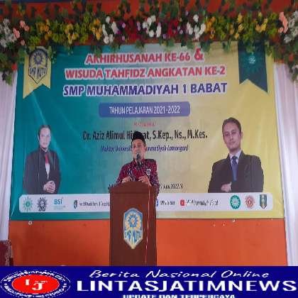 Rektor Umla Dr Abdul Aziz Alimul Hidayat SKep Ns MKes memberikan motivasi kepada para lulusan SMP Mutuba agar terus melanjutkan pendidikan yang lebih tinggi.