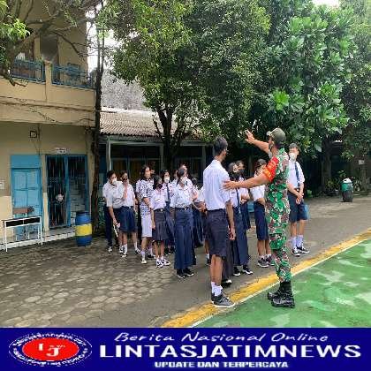 SURAKARTA Pagomex – Membentuk Sikap ,Kedisplinan kekompakan, loyalitas dan kepedulian, rasa persatuan dan rasa tanggung jawab sejak dini, adalah bagian dari bentuk keperdulian Babinsa Kratonan Koramil 03/ Serengan Sersan Mayor Yudhi Widianto memberikan pelatihan dasar Peraturan Baris Berbaris di SMA 1 Kristen Surakarta Pada Hari Kamis Tanggal 150722 Pukul : 07.00 Wib
