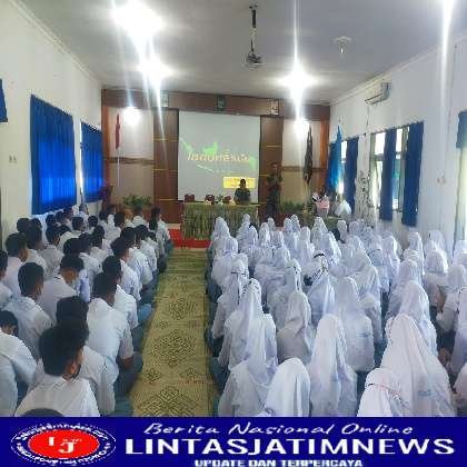 Untuk menanamkan rasa bela negara di lingkungan pendidikan, anggota Kodim 0801/Pacitan, Serda Dofi memberikan materi wawasan kebangsaan kepada siswa siswi kelas 10 di SMA 1 Pacitan Jl. Letjen Suprapto no. 49 Kab. Pacitan, Selasa (19/7/2022).