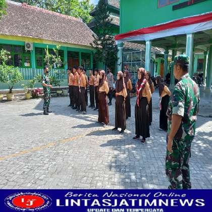 Tanamkan Kedisiplinan dan Bentuk Mental Siswa Sejak Dini, Babinsa Koramil 04 Padas Kodim 0805 Ngawi Berikan Pelatihan PBB