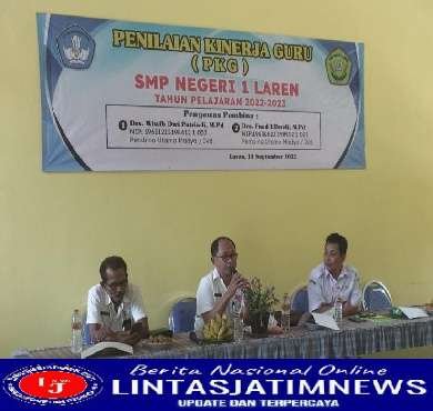 LAMONGAN.lintasjatimnews – Pembinaan dan Penilaian Kinerja Guru (PKG) oleh Pengawas Bidang SMP Dinas Pendidikan Kabupaten Lamongan di SMP Negeri 1 Laren, Rabu (14/9/2022).