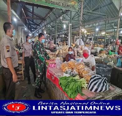 SURAKARTA Pagomex – Babinsa Kelurahan Danukusuman Koramil 03/Serengan Kodim 0735/Surakarta Sertu Priyanto melaksanakan Pemberlakuan Pembatasan Kegiatan Masyarakat ( PPKM level 1 ) serta himbauan prokes kepada pedagang Pasar hardjodaksino Jl. Yos Sudarso Danukusuman Serengan Kota Surakarta, Senin pukul 09.00 Wib (26/09/2022)