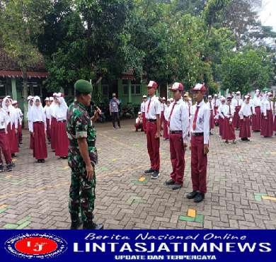 NGAWI Pagomex – Babinsa Koramil 02/Paron Kodim 0805/Ngawi Sertu Joko memberikan pelatihan Peraturan Baris Berbaris (PBB) kepada siswa-siswi SD Negeri 1 Jeblongan Paron, Selasa (18/10/2022).