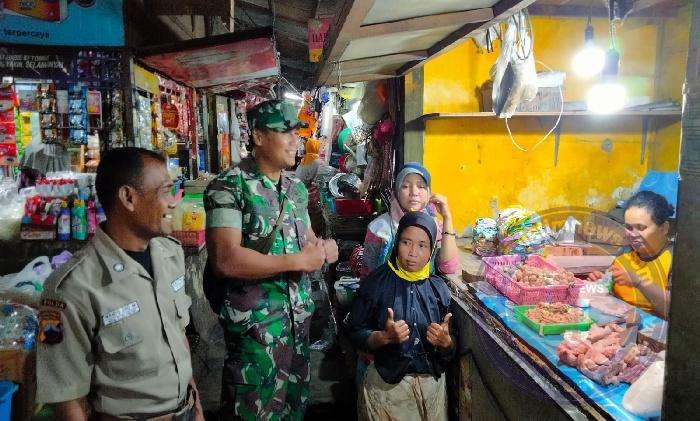 Berbagai upaya dilakukan Bati Bhakti TNI dan Babinsa diwilayah melalui kegiatan komunikasi sosial Kepada Lurah Pasar, Sekurty dan Penjual sembako. Dalam kesempatan ini Serma Yudhi menghimbau kepada Lurah pasar maupun Security pasar agar tidak henti-hentinya mengecek keamanan pasar untuk sama sama menjaga keaman dan ketertiban pasar untuk mencegah hal hal yg tidak di inginkan.