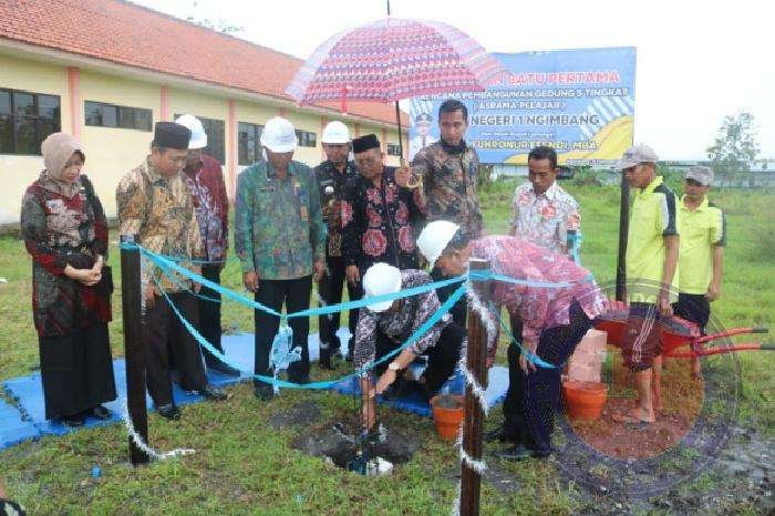 Kemudian dilanjutkan peletakkan batu pertama menandai dimulainya pembangunan Boarding School SMP Negeri 1 Ngimbang