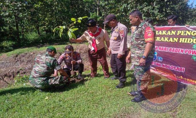 Peringati Hari Golden Powel Day, Pramuka Gandeng Koramil dan Forkopincam Nogosari Laksanakan Penghijauan