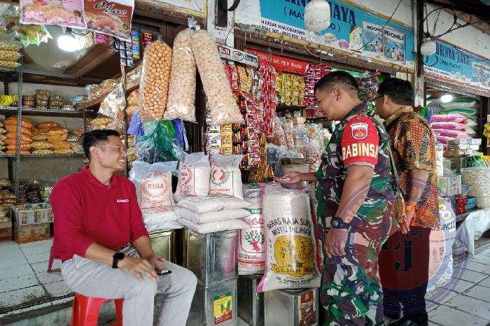 Babinsa Danukusuman dan Lurah Pasar Cek Harga Sembako di Pasar Hardjodaksino
