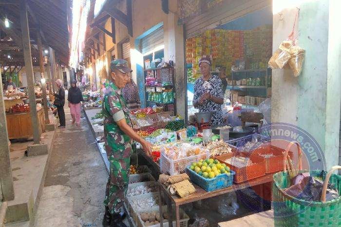 SRAGEN Pagomex.com – Guna mengantisipasi melonjaknya harga dan kelangkaan sembako menjelang bulan Suci Ramadhan, Serka Agus Wiyanto Babinsa Jambanan Koramil 04/Sidoharjo Kodim 0725/Sragen mengecek harga Sembako di kios ibu Kleni di Pasar Pantuk Ds Jambanan, Rabu ( 15/02/2023 )