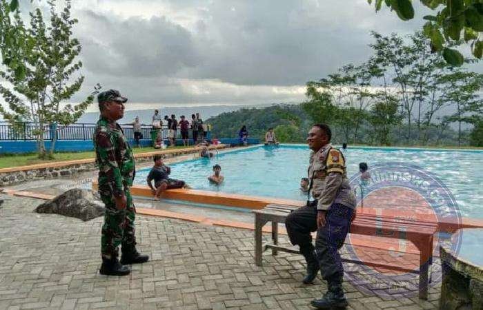 Dalam rangka memberikan rasa aman dan nyaman kepada para pengunjung, Babinsa Koramil 0801/02 Kebonagung Kodim 0801/Pacitan bersama anggota Polsek, melakukan pengamanan dan pemantauan obyek wisata kolam renang Wonowening yang berada di Desa Wonogondo, Kec. Kebonagung, Kab. Pacitan, Selasa, (25/04/2023).