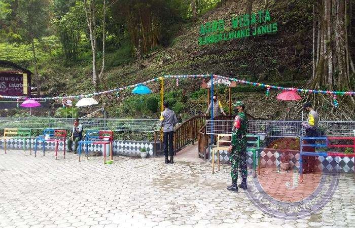 Dalam pengamanan di wilayah Objek Wisata personil Babinsa bekerja sama dengan aparat lain diantaranya, anggota Polri dan anggota Satpam Jamus.