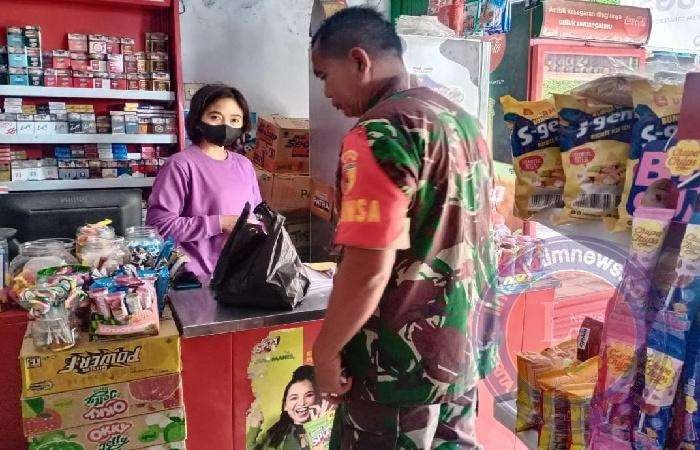 PONOROGO Pagomex.com – Serda Edi Purwanto, anggota Koramil Tipe B 0802/19 Ngebel, Babinsa Pupus hari ini blusukan ke pasar Pabrik Desa Pupus, Kecamatan Ngebel, Kabupaten Ponorogo, Selasa (09/05/2023).