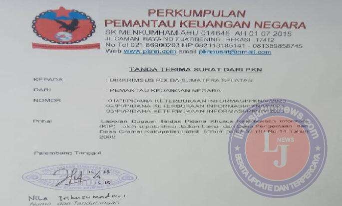 Tiga Kepala Desa di Kabupaten Lahat dilaporkan Pemantau keuangan Negara PKN ke Dirkrimsus Polda Sumatera selatan