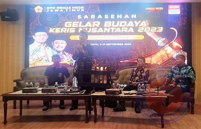 SURABAYA Pagomex.com – Gelar Budaya Keris Nusantara 2023, masuk pada hari ke dua dengan giat Sarasehan Bedah Pusaka dengan tema, Menguak Rahasia Keris di Masa Lalu dan Sekarang yang tidak banyak diketahui Masyarakat umum. Dengan Filosofi Tosan Aji Leluhur Nusantara di Era Digitalisasi Bagi Kaum Millenial.