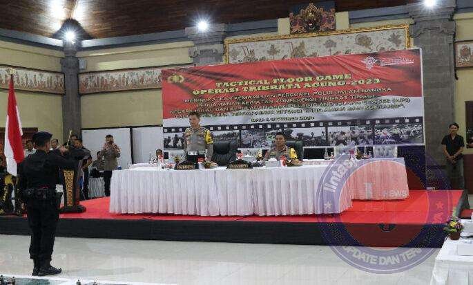 DENPASAR Pagomex.com – Kapolda Bali Irjen Pol. Ida Bagus Kd Putra Narendra, S.I.K., M.Si, menghadiri kegiatan Tactical Floor Game (TFG) yang dilaksanakan di Gedung Perkasa Raga Garwita, Polda Bali, Jumat (6-10-2023).
