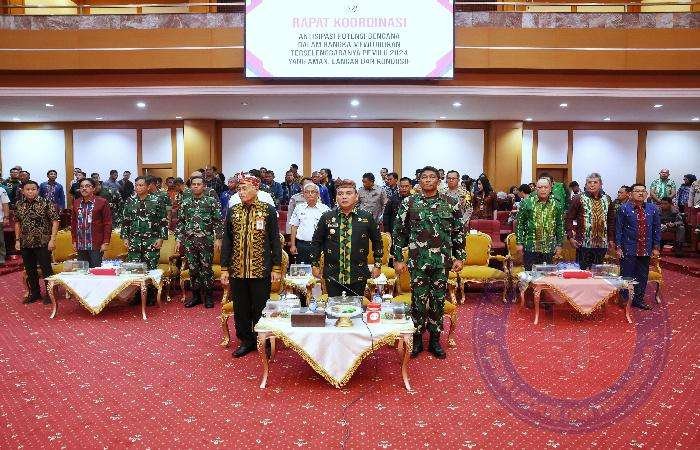 KENDARI Pagomex.com – Pemerintah Provinsi (Pemprov) Sulawesi Tenggara (Sultra) gelar rapat koordinasi (Rakor) lintas sektoral antisipasi potensi bencana dan mewujudkan terselenggaranya Pemilu 2024 yang aman, lancar dan kondusif, bertempat di Ruang Pola Kantor Gubernur, Kamis (01/02/24).