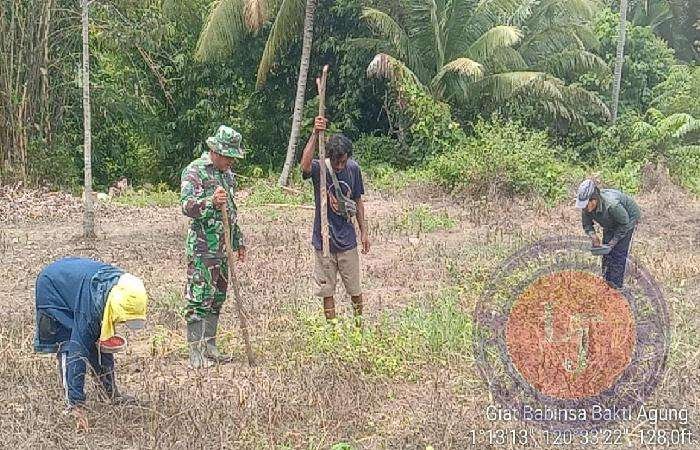 POSO Pagomex.com – Dalam rangka mendukung program upaya khusus (Upsus) ketahanan pangan Padi, Jagung dan Kedelai (Pajale) Koramil 1307-09/Poso Pesisir jajaran Kodim 1307/Poso gencarkan pendampingan terhadap petani. Seperti yang dilakukan oleh Babinsa desa Bakti Agung, anggota Koramil 1307-09/Poso Pesisir, Serma Denis Manggora melakukan pendampingan kepada petani dengan membantu menamam jagung di lahan seluas 80 Are milik Bapak Juwadi, warga Desa Bakti Agung, Kecamatan Poso Pesisir Utara, Kabupaten Poso, Selasa, (06/02/2024).
