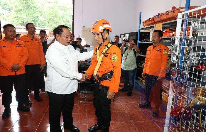 Selesai kunjungan di BMKG, Pj Gubernur melanjutkan Kunker ke Kantor Basarnas Kendari. Setibanya di lokasi, Andap diterima oleh Plh Ka Basarnas Kendari. Disana, Pj Gubernur selanjutnya mengecek kesiapan dan kecepatan personel Basarnas untuk memakai alat perlengkapan SAR.