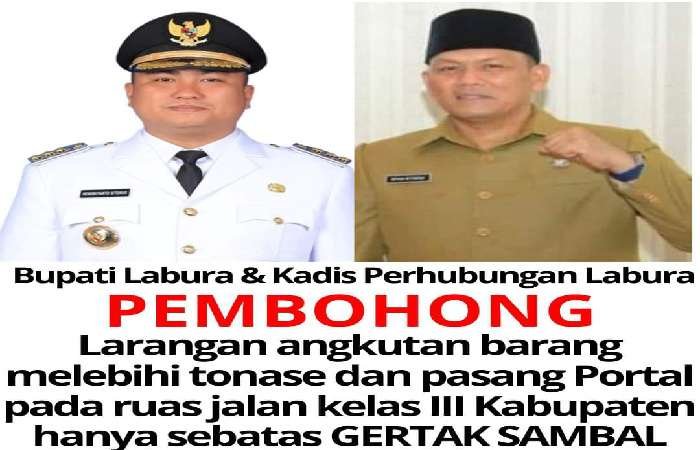 ” Ironisnya warga juga menyampaikan kekecewaan terkait janji Manis pemerintah Kab.Labuhan Batu Utara (Labura) atas tindakan Bupati Labura yang mana melalui Dinas Perhubungan Labura Pasalnya pada tgl 28 Oktober 2022 dan tgl 24 februari 2023 bupati labura melalui dinas perhubungan telah mengeluarkan surat nomor 550/1515/DISHUB/2022 dan surat nomor 550/32/DISHUB/2023 perihal larangan angkutan barang melebihi muatan melintas di jalan kabupaten, dan pada tgl 10 November 2023 bupati labura melalui dinas perhubungan telah memasang spanduk pemberitahuan pemasangan portal pada jalan kelas III di kabupaten labuhan batu utara yang diduga hanya formalitas demi memuluskan dan melancarkan usahanya, atas perbuatan bupati tersebut masyarakat labura sangat menyesalkan tindakan selaku orang nomor satu pemkab Kab.Labura,”tegas sumber.